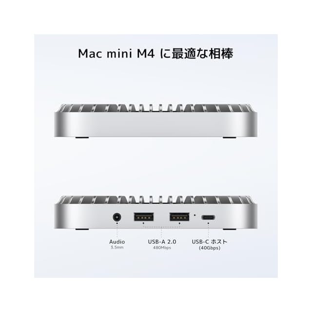 【 Mac Miniと完璧に調和する洗練デザイン – アルミ合金で高級感アップ!】Mac Mini M4/M4 Proのデザインに合わせた、高級アルミニウム合金製ボディを採用。優れた放熱性と耐久性を兼ね備え、デスク周りをスッキリ整理できます。また、電源ボタンの位置を邪魔しない設計で、ストレスなく使用可能!