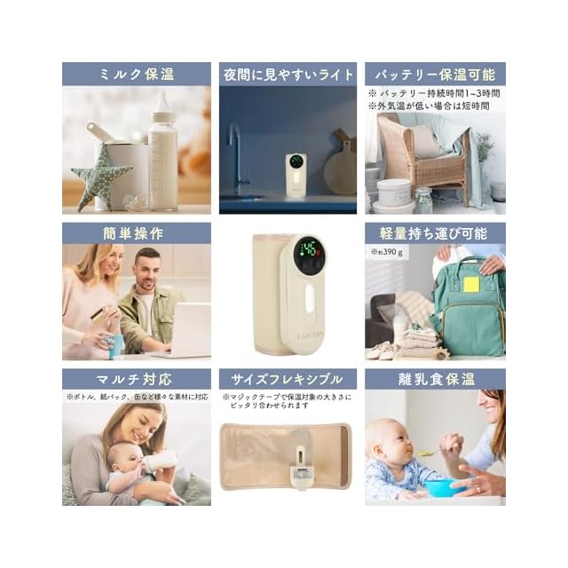 商品名:ミルクウォーマー モバイル ボトル 哺乳瓶 ポット LARUTAN 調乳 多機能 ラルタン ミルク ウォーマー(アイボリー)