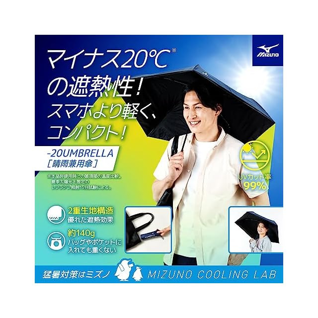商品名:MIZUNO(ミズノ) 日傘 -20 UMBRELLA PEANUTS トゥエンティアンダーアンブレラ ピーナッツ ユニセックス 軽量約140g 親骨長さ約50cm 晴雨兼用 UVカット率99% ダブルシェード構造 ラテ/チョコレート 収納袋付