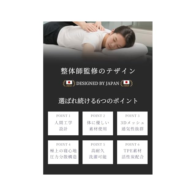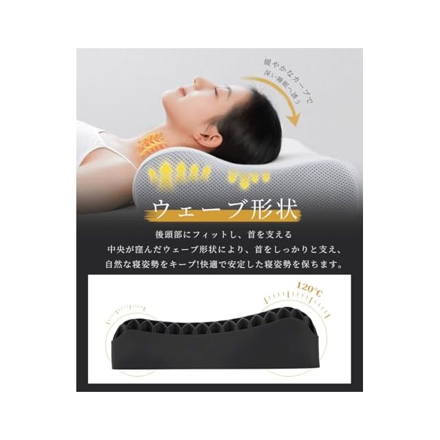 【極上のフィット感で、理想の寝姿勢をサポート】高機能TPE素材と独自のヘキサゴン構造が、頭・首・肩をやさしく包み込み、負担を軽減。高反発×低反発のW効果で、寝返りしても朝までぐっすり。