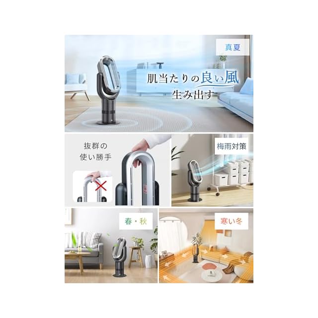 【四季を越えた快適をもたらす全天候設計】LAOGOTの羽なし扇風機は、高性能DCモーターを搭載し、低消費電力ながら高性能を実現し、優しい微風から遠くまで届くパワフルな風まで、10段階の多彩な風量を実現。夏の猛暑を乗り切る強力送風から、春や秋の過ごしやすい季節にぴったりの微風モードまで、1台でシーンに応じた快適さを提供。風の循環が良くなり、空気循環が改善され、より健康的で快適な生活環境を作り出します。タワーファン、扇風機、サーキュレーターの機能を兼ね備えており、季節の変化に柔軟に対応し、「夏は涼しく、冬は暖かく」を実現する、冷暖両用の羽根なしタワーファンです。※暖房時には3段階の温風設定、寒い冬にもゆったりと温まることができます。