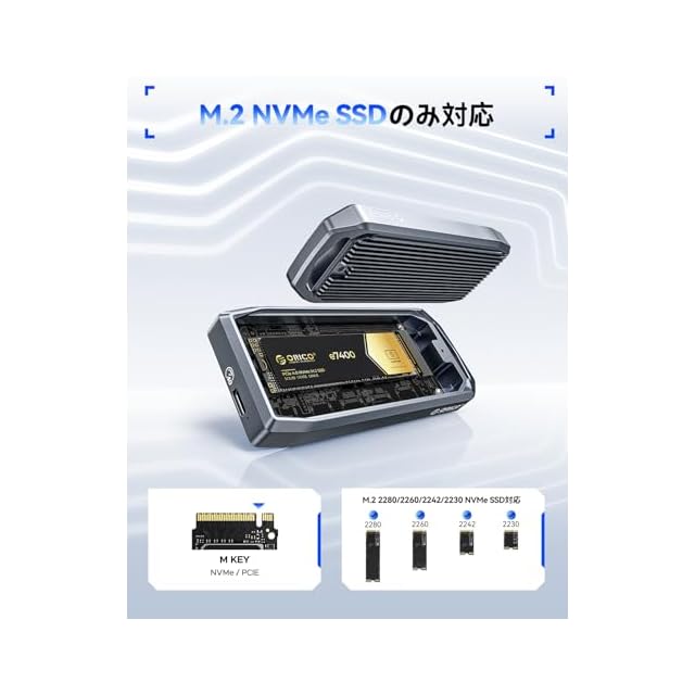 商品名:ORICO M.2 SSD 外付けケース 【USB4 40Gbps超高速】NVMe SSD ケース 全アルミ Thunderbolt 3/4 USB 4/3.2/3.1/3.0対応 2230 2242 2260 2280(M Key)をサポート ポータブル(SSDなし) M2V01-C4-GY