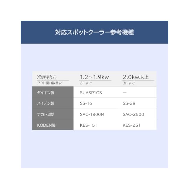スポットクーラーに取付けるだけで最大3人まで冷却可能。 ダクトに空いた複数の穴から冷気を噴射。消費電力を変えることなく、複数人を冷却するので省エネにもつながります。 簡単設営 ファスナーでパーツを繋げるだけなので、誰でも簡単に設営することができます。 超軽量素材で、使用しないときは小さく折りたためるので保管する場所をとりません。搬送や収納も容易です。 スポットクーラーから離れた場所の冷却が可能です。