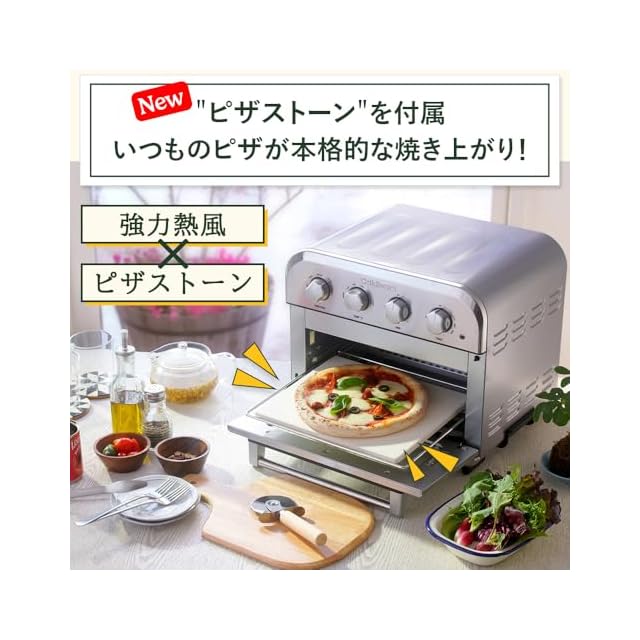 商品名:クイジナート ノンフライ オーブン トースター 4枚焼き オーブン グリル料理 冷凍 トースト ピザストーン付属 4ダイヤル シルバー TOA-39SJ