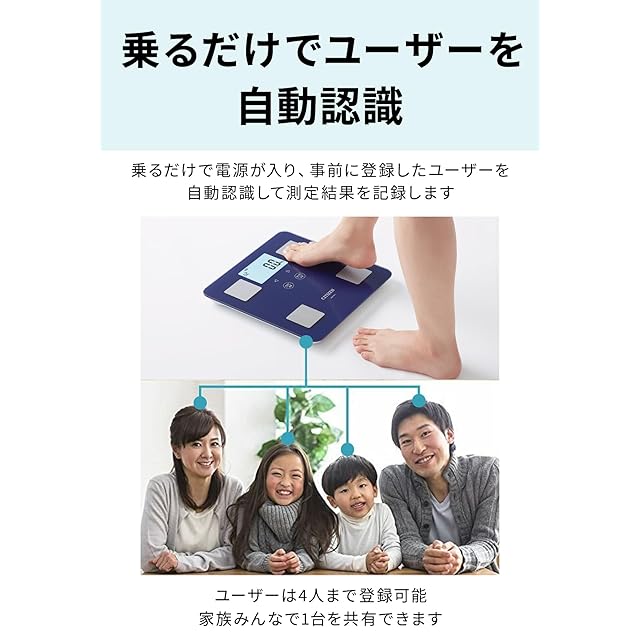 【選べる2パターンの使い方】ダイエットやトレーニング、健康管理を行いたい方は体組成計として、手軽に体重だけをはかりたい方は体重計として使用できます。ユーザーは4人まで登録でき、ご家族で1台を共有できます。