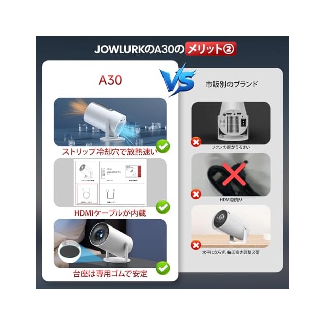 【革新的な270°回転&スタンド一体型&自動台形補正】JOWLURKプロジェクターA30は、据え置く型プロジェクターと異なり、本体には270°回転できるスタンドを搭載し、別に三脚スタンドを装置しないまま、 スタンドを回転させるだけで影角度を自由に調整し、簡単にご自宅の壁や天井に投影することができます。また、小型プロジェクターは自動台形補正機能が搭載し、プロジェクターの設置場所により、上下自動に補正で、4辺補正と一緒、どの角度から見ても、最適な画面に補正できます。【限定期間キャンペーン】今ご注文いただくと、すぐに「100インチスクリーン」がもらえる!お気軽に説明書の連絡先より弊社までご応募してください!