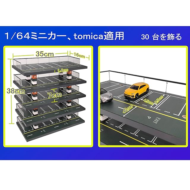 トミカ 収納:GUNSEED 五階トミカパーキングケースはトミカ収納に適しており、たくさんの1/64ミニカーを収納することができます。合計 5 階で、各階にミニカーを 6 台ずつ収納できます。合計であなたのトミカとミニカーを 30~35 台収納することができます。とてもきれいなトミカガレージで、トミカ ケースとして使うことができます。