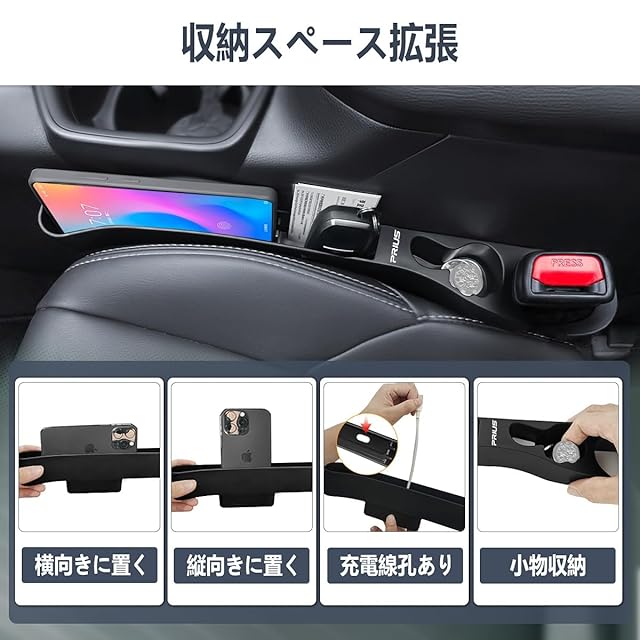 商品名:【2025年アップグレード版】プリウス 専用ロゴ 分類収納隙間クッション PRIUS 50系 60系 シートサイドクッション prius 30系 40系 収納ボックス コンソール隙間埋め スマホ充電線孔あり設計 カード コイン収納可能 運転席+助手席 隙間収納 落下防止 小物入れ ロゴ左右対称設計(2個1セット,ブラック)