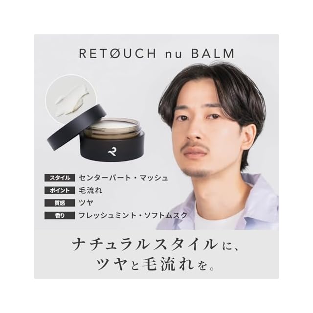 レタッチ RETOUCH ヘアバーム メンズ バーム センターパート マッシュ スタイリング 40g (ソフトムスクの香り)