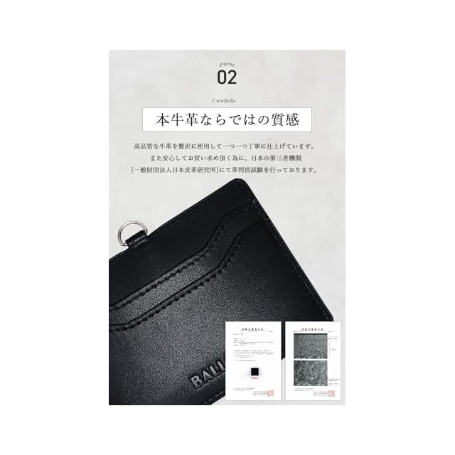 ✅【本牛革ならではの質感】BALLOTのIDカードホルダーは、高品質な本牛革を使用し、一つひとつ丁寧に仕上げています。牛革特有の滑らかな手触りと耐久性が特徴で、長く愛用していただける一品です。さらに、日本の第三者機関「一般財団法人日本皮革研究所」にて革の判別試験を実施しており、品質の確かさがされています。洗練されたデザインと本革の上品な質感が、ビジネスシーンでの信頼感を演出します。