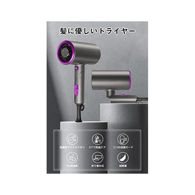 商品名:ドライヤー 大風量 【2025最新型】速乾 軽量 折り畳み式 高濃度マイナスイオン 恒温ヘアケア 冷熱風 3段階風量調節 ノズル付き コンパクト 持ち運び便利 家庭用/寮用/旅行用 どらいやー ヘアドライヤー PSE認証済み