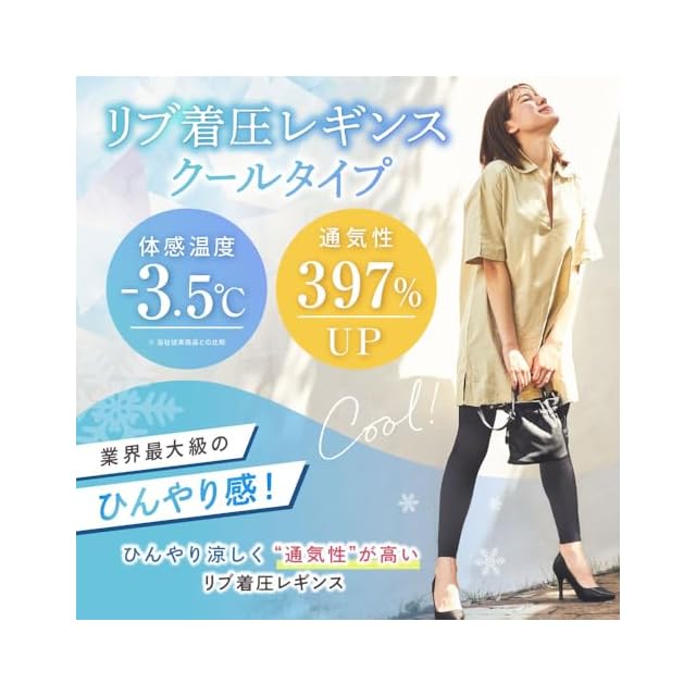 [ベルシリーズ] リブクール 接触冷感 リブ着圧 公式 着圧レギンス リブ着圧 スパッツ レギンス タイツ レディース 3l 大きいサイズ お出かけ 寝るとき 夏用 冷感
