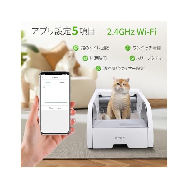 [APPプログラム]: ワンタッチ清掃、遅延清掃、睡眠時間(夜間の睡眠時間にトイレを一時停止するように設定できます)、健康管理(トイレに行った回数とトイレに費やした時間を記録します)。
