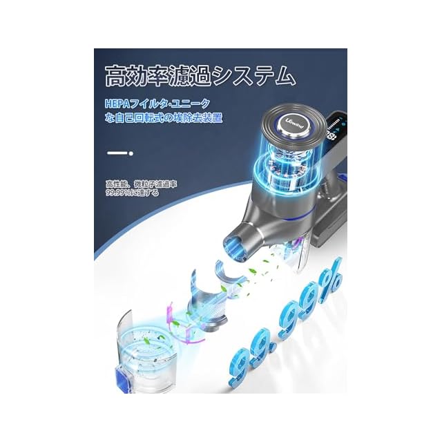 【多重濾過システム・お手入れ簡単】 HS9にのみ搭載された前所未有な自動回転式ダスターを装備!フィルター内部の鋼絲ネットに付着した顽固なホコリを自動的に削り落とし、吸引力を常に新しく保ちます。フィルターの保守をより容易にし、手動でブラシ洗いする必要がなく、フィルターの詰まりによる吸引力の低下を完全に防止します。サイクロン式ダストコレクターとHEPAフィルターを装備し、99.99%のホコリを捕獲し、浄化され、アレルギーを引き起こさない空気を放出します。花粉症患者にも優しく、二次汚染を引き起こさずにフィルターを提供します。集塵カップに汚れがある場合、心配せず簡単に取り外して水で洗えます。