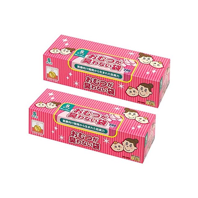 驚異の防臭袋 BOS (ボス) おむつが臭わない袋 2個セット 赤ちゃん用 処理袋 【カラー:ピンク】 (Sサイズ 200枚入)