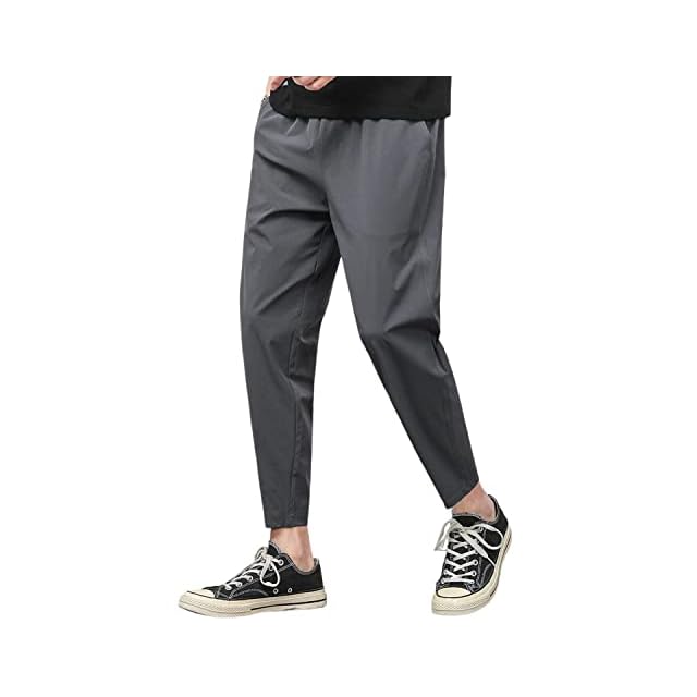 [foveitaa] 接触冷感 パンツ メンズ 9分丈 夏 ゆったり ストレッチ 薄手 イージーパンツ 大きいサイズ アイスシルク 清涼 涼しい 涼感 通気性 吸水速乾 快適 ボトムス ズボン エアパンツ dark gray-M