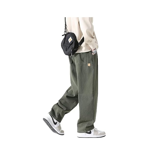 [Olekei] サルエルパンツ メンズ ズボン ワイドパンツ メンズ ズボン 9分丈 無地 調整紐 人気 快適 ゆったり 通気性 大きいサイズ カジュアル 袴パンツ 快適 オールシーズン春 夏 秋 冬 (JP, アルファベット, 3XL, #7:グリーン)