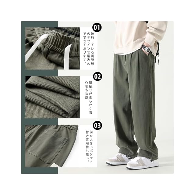 流行している調整紐のデザインで編みんでできております。カジュアルファッションとして、ウェストの幅を自由に調整でき、動きやすい、ゆったりとした履き心地です。両側にはスマホが入るポケットを装備し使いやすさも◎(両側に深さのちょうどいい後ろポケット付き、実用性が格段にUP!)