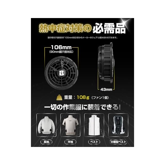 【熱中症対策必需品】蒸し暑さを瞬時に吹き飛ばし、圧倒的な冷感を得られます!360°全面強力送風、3秒だけかかり体温が瞬間に-18℃下がり、瞬間冷却を実現しました。エアコンが使用できない状況での作業者のための熱中症対策商品。工場・林業・農業・建築作業・溶接作業などの高温環境に対応して一気に涼しくなります。Bulonchiのファンバッテリーセットを身に着けて、高温環境でも「リラックス」して作業ができ、効率を向上させます。