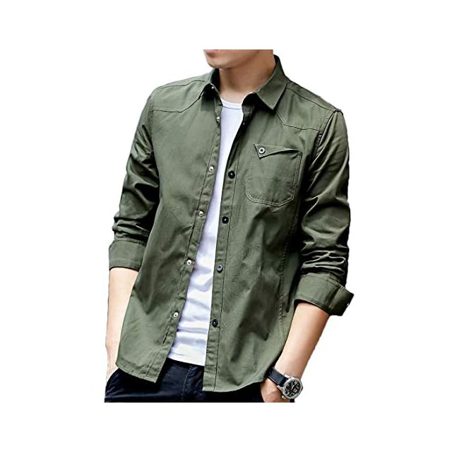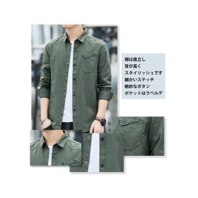綿は天然繊維で、通気性に優れ、アルカリ性に対する抵抗力が大きいので、生地は柔らかく滑らかで肌との接触を快適にします。<br>快適な優良品質の綿生地、弾力性と快適性の効果があります、着心地が良くて、いつも貴方の肌をケアします<br><br>◎季節の変わり目にはライトアウターとして、冬場は更にコートを羽織ってレイヤードスタイルで。<br>◎ロングシーズン着まわせて使い勝手の良い便利な1着です。<br>◎さらっとラフに羽織るだけでサマになります。<br>◎肩のヨーク切り替えや折り返しデザインの胸ポケットなど、シンプルながらもデザイン性の高い作り。<br>◎フロントはスナップボタンで着脱しやすく<br><br>【M=日本XS】胸囲 98cm肩幅 43cm後着丈 69cm袖丈 59cm<br>【L=日本S】胸囲 102cm肩幅 44cm後着丈 71cm袖丈 60.5cm<br>【XL=日本M】胸囲 106cm肩幅 45cm後着丈 73cm袖丈 62cm<br>【2XL=日本L】胸囲 110cm肩幅 46cm後着丈 74cm袖丈 62cm<br>【3XL=日本XL】胸囲 114cm肩幅 47cm後着丈 75cm袖丈 63cm<br><br>【各种用途】<br>形が格好良くスタイリッシュなので、デートやお呼ばれ、仕事やオフィスだけでなく卒園式、卒業式、入園式、入学式、発表会、結婚式、二次会などのフォーマルシーンにも大活躍です!<br><br>綿100%素材なので、着心地も抜群で、少しゆとりのあるサイズ感なので、シャツとしてもシャツジャケットとしてもお使い頂けます。<br><br>生地は厚くもなく薄くもないほどよい厚みビジネスでもカジュアルにも通年で着まわせる定番のアイテムです。<br><br>普段使いとしては、下にジーンズやスリムパンツなど組み合わせは自由です。カジュアル系にもどちらのコーディネートにも相性が抜群です。