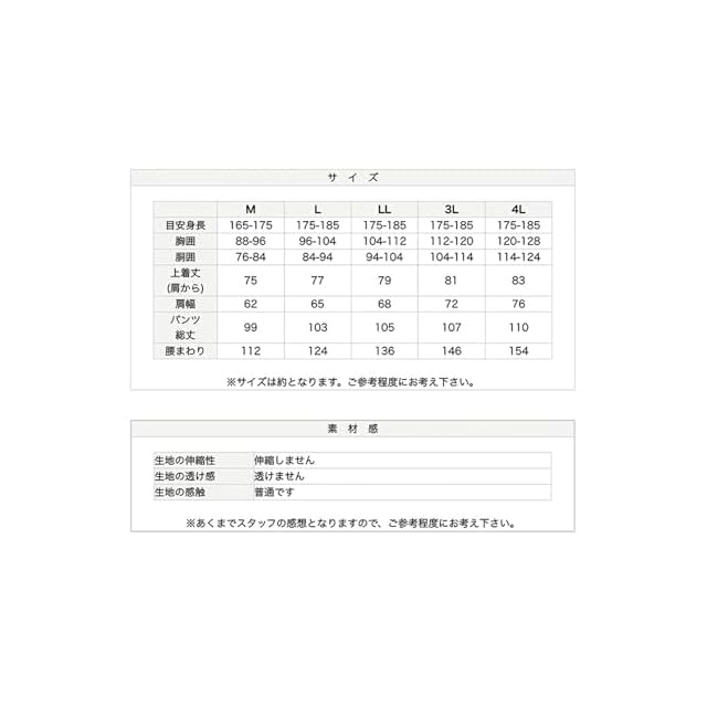[サイズ]:M、L、LL、3L、4L [素材]:ポリエステル80%、綿20%