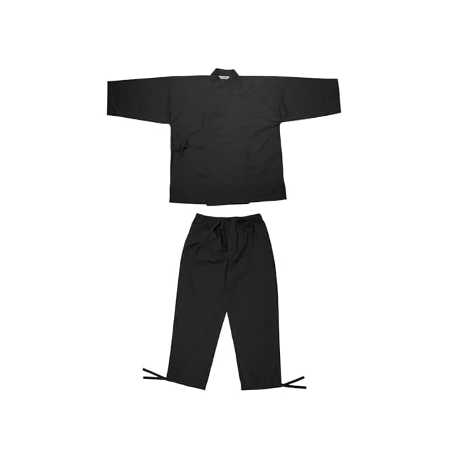 [KYOETSU] [キョウエツ] 作務衣 さむえ 男性用 メンズ 夏 冬 大きいサイズ さむい男性用 通年 作務 衣 (M, 黒)