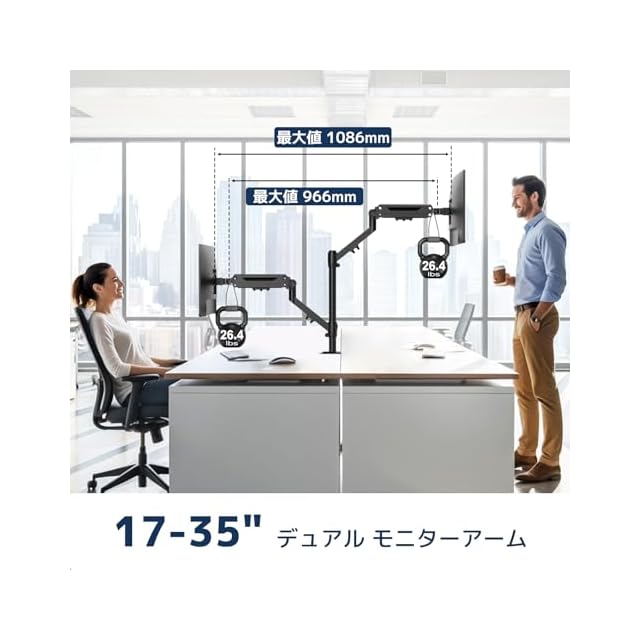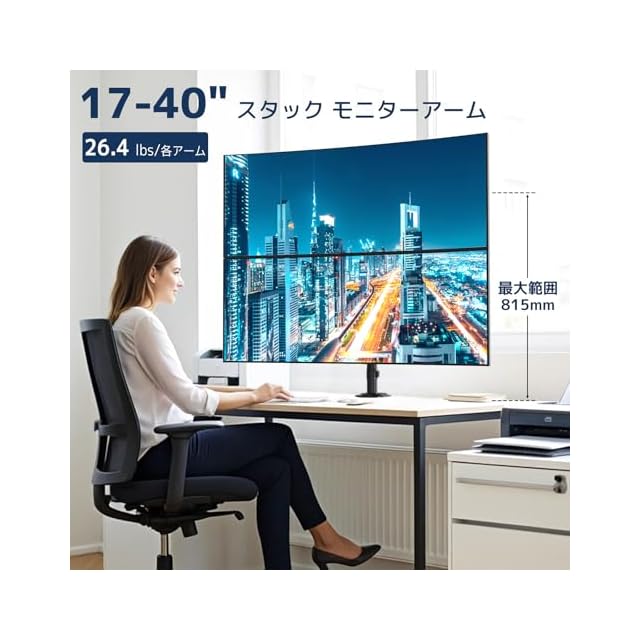 ご購入前のチェックポイント:①モニターのサイズは17~40インチまで(上下40インチ対応 左右35インチ対応) ②モニターとモニターアクセサリーの重量は2~12㎏以内 ③75mm*75mmと100mm*100mmのVESA規格に対応 ④取付可能天板:厚さ10~85mm(クランプ式)。