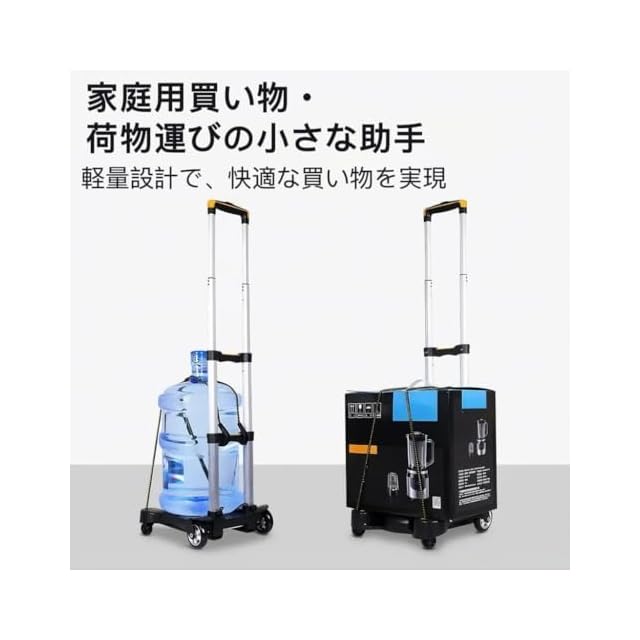 商品名:Fentefere 台車 軽量 折りたたみ ミニ台車|荷物カート 4輪 静音 コンパクト|平台車 キャリーカート ショッピングカート|組立不要 開いてすぐ使える|三段階調整ハンドル 押す引く両用|耐荷重80kg 自重1.7kg