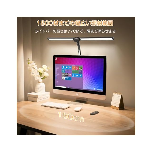 【2025年最新モデル|3光源で1700lm超高輝度】一本で複数の照明ニーズを解決したモニターライト!RUNELVESデスクスタンドライトは、272個の超高輝度LEDビーズを搭載した独特の3つの光源設計です。明るく強力、幅広い照明がテーブルトップ全体を照らします。同時にライトポールは77CM伸ばすことができ、180cmの広範囲をムラなく照らし、適切で快適な照明を提供。なお、デスクライトは最大1700ルーメンで、市販品より明るく、作業や勉強などに最適!
