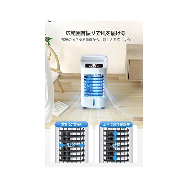 【部屋全体に涼風を届ける冷風扇!上下左右の送風で快適空間を演出】スリムな外観ながら、左右120度の自動首振りと上下90度の手動調整機能で、リビング全体をまんべんなく冷やす冷風扇風機。直感的に操作できる日本語タッチパネルと、遠隔操作に便利なリモコン付き。静音性にも優れており、子供の昼寝や在宅ワーク中でも気兼ねなく使えます。家庭でもオフィスでも使いやすい、万能な移動式クーラーとして活躍します。