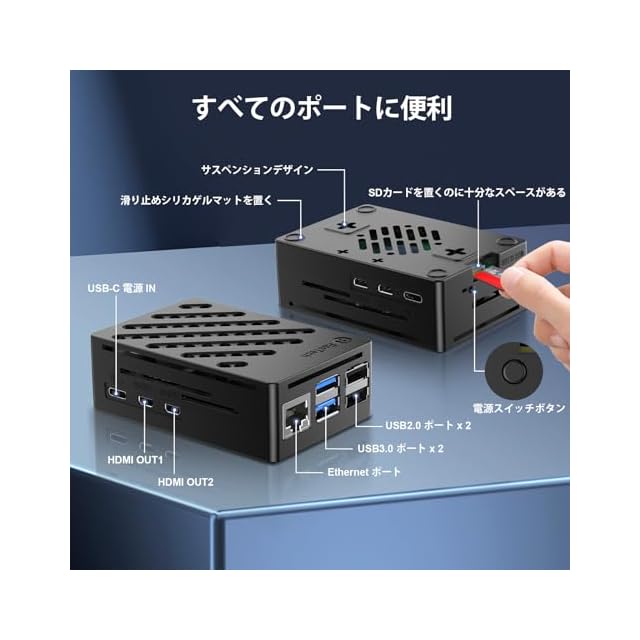 【27 W電源】 5.1 V 5 A 27 W USB C電源はRaspberry Pi 5 ボード専用に設計されている。安定した電力供給を実現し、長時間使用でも最適なパフォーマンスを維持。電源アダプタにはPower Deliveryテクノロジーが搭載されており、互換機器の急速かつ効率的な充電が可能です。また、5 A時の5.1 V、3.0 A時の9.0 V、2.25 A時の12.0 V、1.8 A時の15.0 Vなど、さまざまな出力電圧オプションを提供し、異なるデバイス要件に柔軟性を提供します。