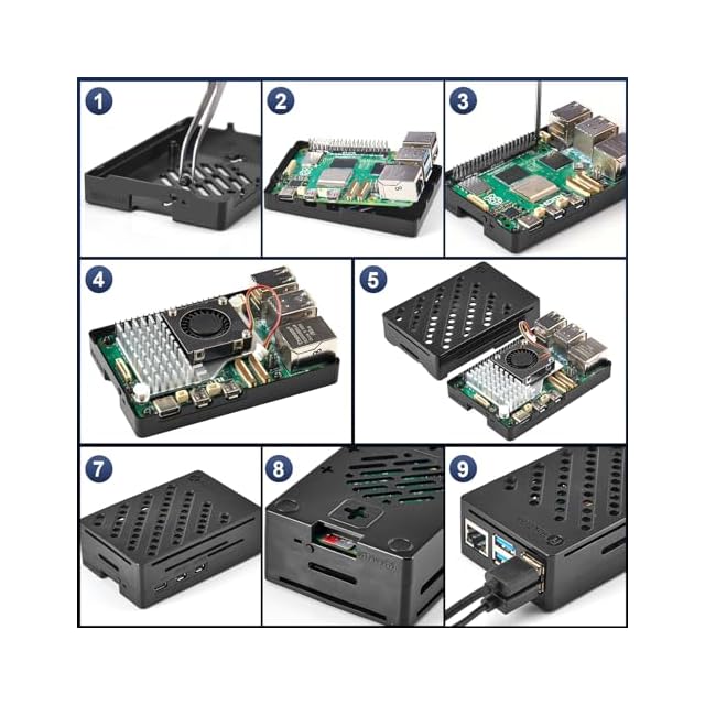 商品名:RasTech Raspberry Pi 5 16GB セット と 64GB メモリカード Pi 5 16gb 技適マーク付き本体 Active Cooler アクティブクーラ 5.1V 5A Type C電源 Micro HD Out ケーブル ABSケース USBカードリーダ スクリュードライバ 説明書 インストールの説明図