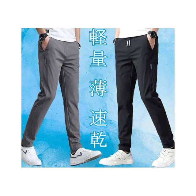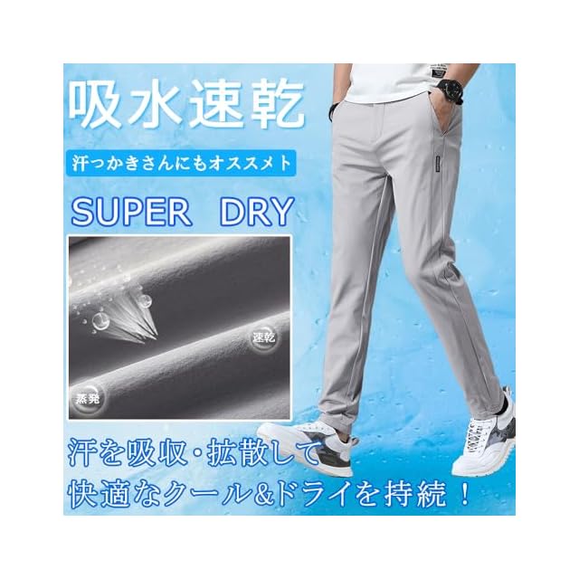 [ROOKMZU] アイスシルクパンツ メンズ 接触冷感 ズボン メンズ 夏 パンツ ゴルフ ストレッチパンツ 冷感 涼しい 速乾カジュアル イージーパンツ ボトムス テーパードパンツ ビジネス スラックス 前開き 夏用ズボン