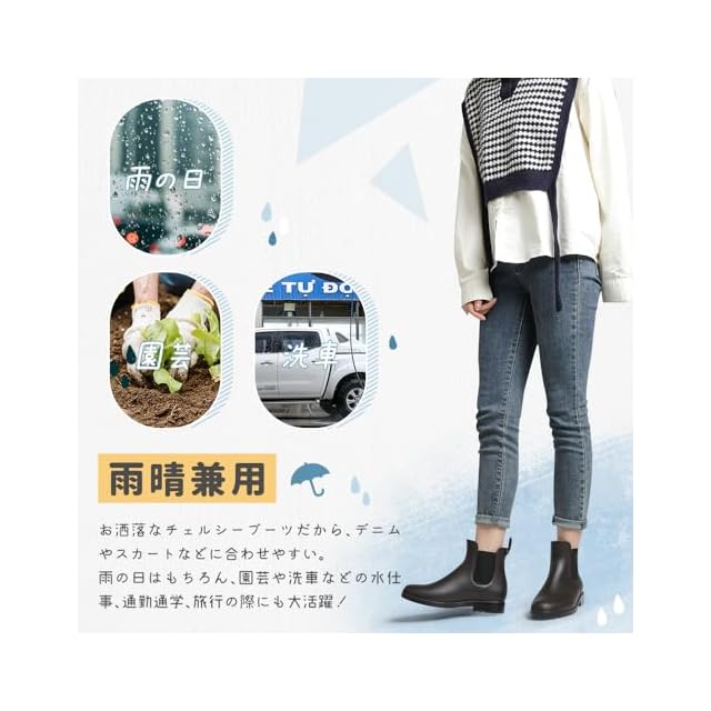 【雨靴】雨の日、雪の日、庭仕事、洗車のとき等に対応。日常履きでもオシャレで違和感なく合わせやすいです。