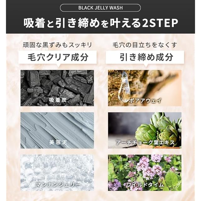 泡立て不要の洗顔ジェル、洗顔フォームのカテゴリに入る商品です。商品名は、ブラックジェリーウォッシュといい、泥や炭の成分が含まれており、炭洗顔とも呼ばれます。マンナンジェリーで、しっかりと汚れを吸着して毛穴ケア、毛穴洗浄をしてくれます。 男性、女性問わずにご購入されています。 この洗顔ジェルは、毛穴汚れや黒ずみ、角栓をしっかり洗浄し、肌の奥から清潔感を引き出す毛穴ケアに特化しています。泥や炭成分を含み、毛穴の黒ずみや角栓取りに効果的で、洗い上がりはすっきりとしたさっぱり感。毛穴引き締めのためのセラミドなどの美容成分も配合し、保湿効果もあるので、乾燥を気にせず使える無添加処方、界面活性剤不使用の洗顔です。 ニキビや敏感肌の方にも優しく、メンズの毛穴洗浄にも適したこの洗顔フォームで、すべすべな美肌を目指しましょう!トラベルサイズもあり、旅行や出張にも便利です。