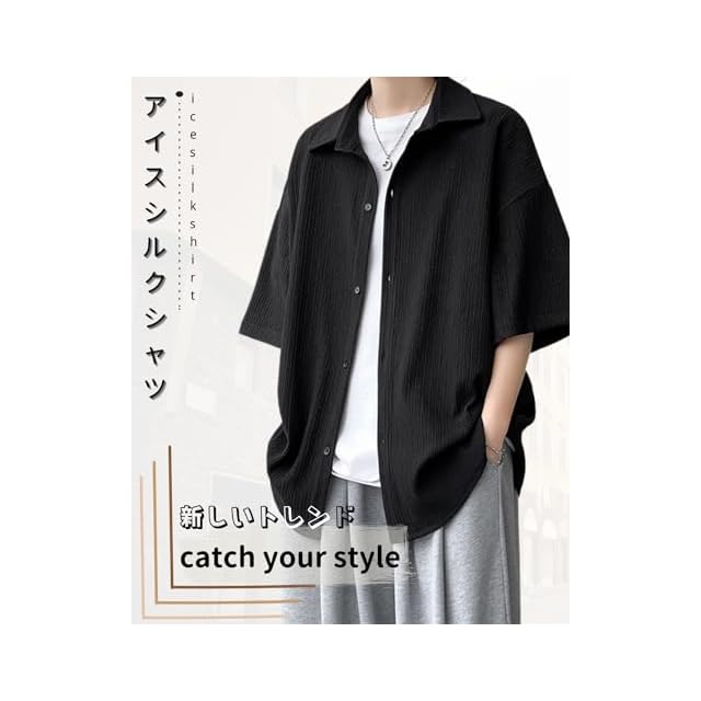 商品名:[foveitaa] メンズ シャツ 夏服 メンズ 半袖 冷感 通気性 ワイシャツ 大きい サイズ ビジネス カジュアル yシャツ ゆったり おしゃれ 夏用 清涼 涼しい 涼感 服 軽い 柔らかい かっこいい 無地 シンプル オシャレ Black 4XL