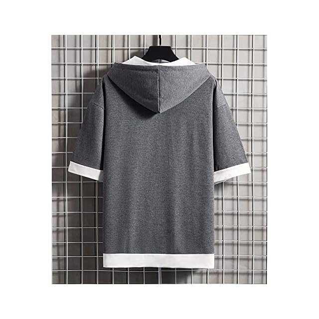 [foveitaa] 夏服 メンズ パーカー tシャツ 半袖 五分袖 ゆったり おしゃれ おおきい サイズ ジップ アップ シンプル オシャレ ビッグ シルエット 重ね着風 フード付き かっこいい カーディガン GREY-M