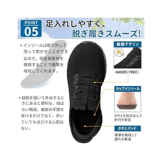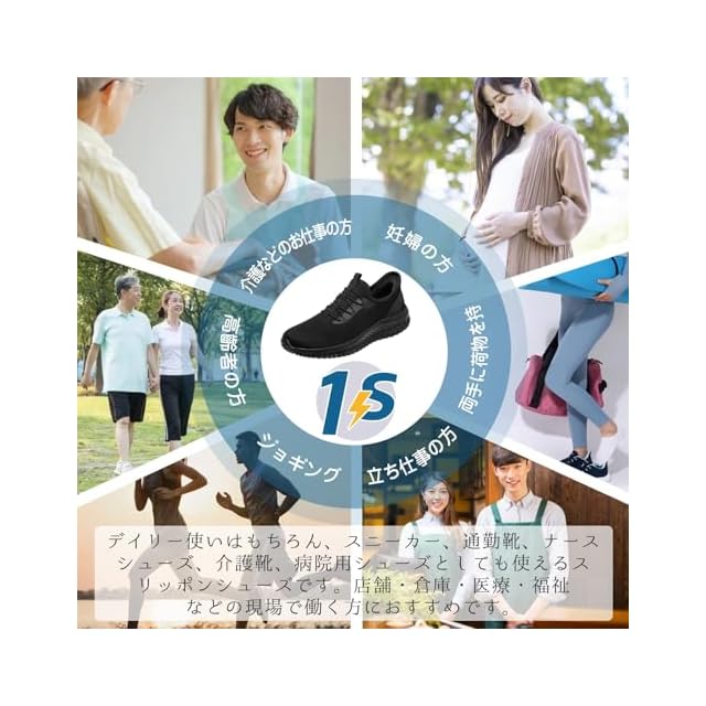 [STRDEOUT] 【立ったまま履ける靴】スニーカー スリッポン メンズ レディース 紐なし 上履き ナースシューズ ウォーキング 室内履き 軽量 夏 メッシュ 立ち仕事 通気性 黒 ブラック