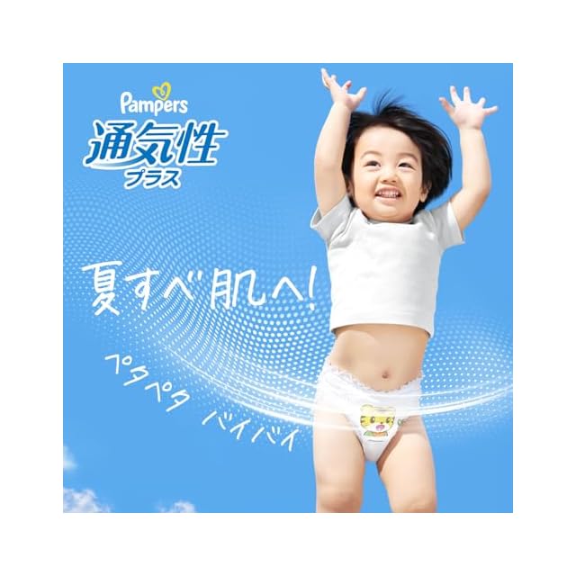 【NEW! パンパース 通気性プラス パンツ】じめじめ解放メッシュで365日赤ちゃんのおしり快適!夏は蒸し暑さで、冬は厚着でおむつのムレが心配。そして長時間履いているとお肌が荒れないか心配…。そんな時は肌ケア設計の通気性プラス パンツ!