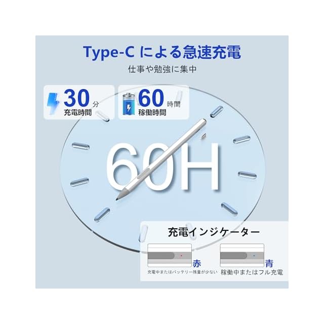 [Type C の急速充電と長いバッテリー寿命]: Suejezt サーフェス ペン の最先端の Type-C 充電と長いバッテリー寿命をお楽しみください。わずか 30 分の充電で 60 時間使用できます。 10分間使用しないと自動的に「スリープモード」に切り替わり、バッテリーの消費を大幅に節約し、使用時間を延長します。また、ペン本体にはバッテリーの状態をお知らせするLED充電インジケーターを搭載しています。学生、ビジネスパーソン、メモを取ったり絵を描いたりすることが多いクリエイティブな人に最適です。