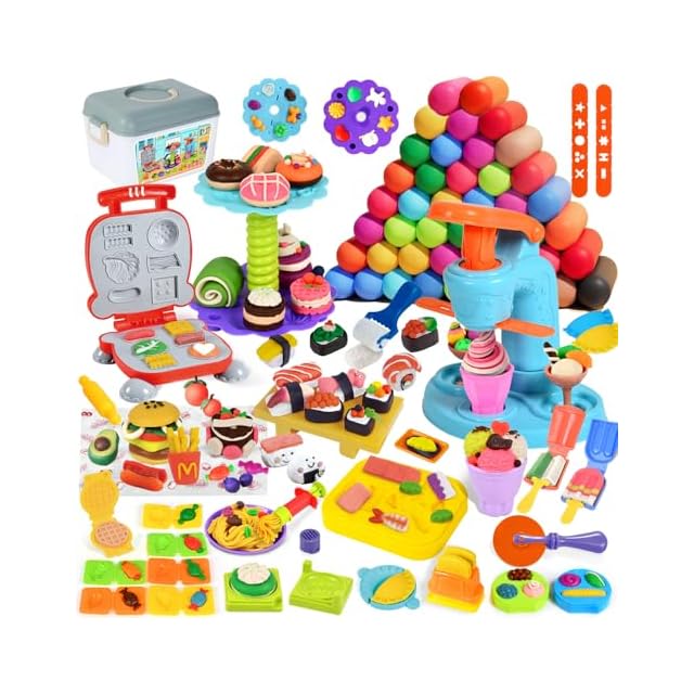 【完成度の高いごっこ遊び】セットでテンコ盛り!ソフトクリーム屋さんや洋食店、パン屋さんなど、これ一つで色々なごっこ遊びができるお粘土セットです。子どもが夢中になって自分で作った物でおままごと遊び。こういうおもちゃは子供の想像性が育まれるのが見ていて分かります。