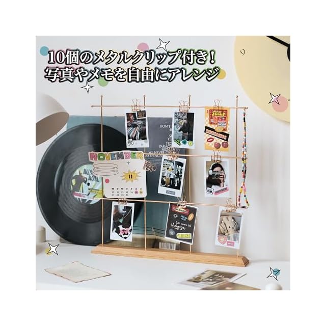 【10個のメタルクリップ付き!写真やメモを自由にアレンジ】