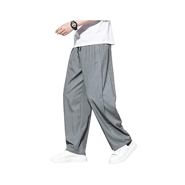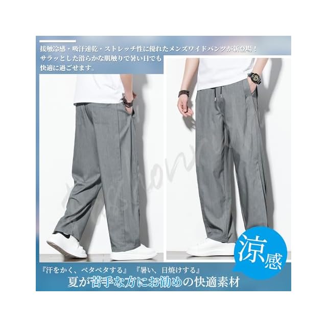 [Fasshonrida] ワイドパンツ メンズ ズボン 夏用 イージーパンツ 涼しい スラックス 冷感 夏服 ずぼん 大きいサイズ サルエルパンツ ゆったり ボトムス 無地 ストレートパンツ おしゃれ ロングパンツ 春 夏 gray L