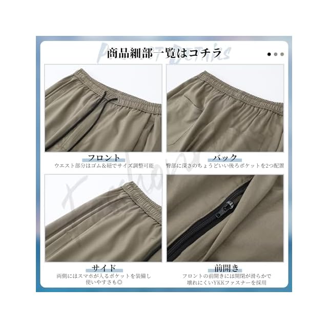 非常に多くの要望を頂いておりました。前開きファスナーを遂に実装!フロントには、開閉が滑らかで壊れにくいYKKZIPを使用。ウエストはゴムデザイン、腰紐付きで絞り調整可能なので気軽に着用できます。フロント部分にはスマホが入るポケットを2つ装備し使いやすさも◎バックの両サイドに深さのちょうどいいヒップポケット付き、実用性が格段にUP!