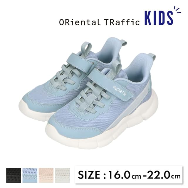 [オリエンタルトラフィック] ガールズ運動靴・スニーカー キッズスニーカー 子供靴 通学 軽量 男の子 女の子 ユニセックス 男女兼用 履きやすい クッション マジックテープ ゴム紐 K-451 ブルー 20.0 cm