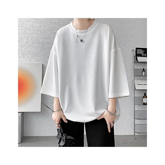 [foveitaa] tシャツ メンズ 夏服 七分袖 おおきい サイズ 涼しい ゆったり ビッグシルエット なつふく ストリート シンプル 無地 韓国風ファッション カジュアル トップス 柔らかい肌触り 洋服 軽い White-3XL