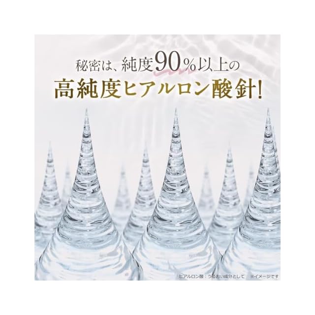 【 目の下 / 目元 / 口元 に】マイクロニードル 化粧品とは、濃厚な ヒアルロン酸 *を主成分としたたっぷりの美容成分を、針状に固めてパッチへ配置した「刺す化粧品」 です。美容成分でできた針が肌に直接刺ささり、肌内部で溶けることで、高濃度のまま美容成分をしっかりと浸透**・拡散**していきます。ニードルパッチ や「刺す」 ヒアルロン酸 パッチ とも呼びます 。 *保湿成分 **角質層まで