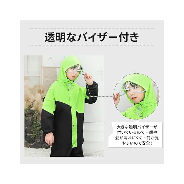 商品名:[Volunboy] レインコート キッズ 上下 男の子 女の子 ランドセル対応 修学旅行 林間学校 子供 カッパ レインスーツ レインウェア セパレート ジュニア 小学生 中学生 おしゃれ 収納バッグ付き 120-160cm (ブラック,150)
