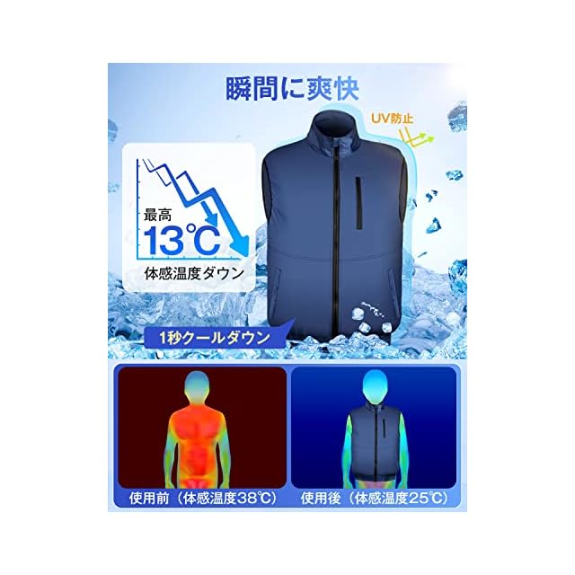 【6つのおすすめポイント】1、UVカット素材を採用し、紫外線からお肌をしっかり守ります。2、ゴム裾設計を取り入れ、密封性がアップした上、バッテリーの重量を分担させます。3、ファンの取り付け部に強化リングが付き、より簡単に取り付けられます。4、肩部分に調節ゴムが設計され、ベストの肩幅を調整可能。5、背後部にアイスポケットを完備。6、ケーブルホルダー付きで、作業中にケーブルの脱落を防ぎます。