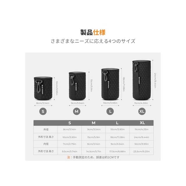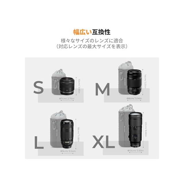 【多機種のレンズに対応】4つのサイズがあり、ほとんどのカメラレンズに対応しています。さまざまな撮影ニーズに合わせて複数のレンズを持ち運ぶのに便利です。また、屋外での撮影では、機材を整然と保管してほこりや損傷を防ぐことができます